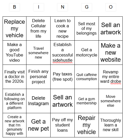 So this is my 2026 BINGO, to be played on December 31st 2026.. let's see what happens XD
