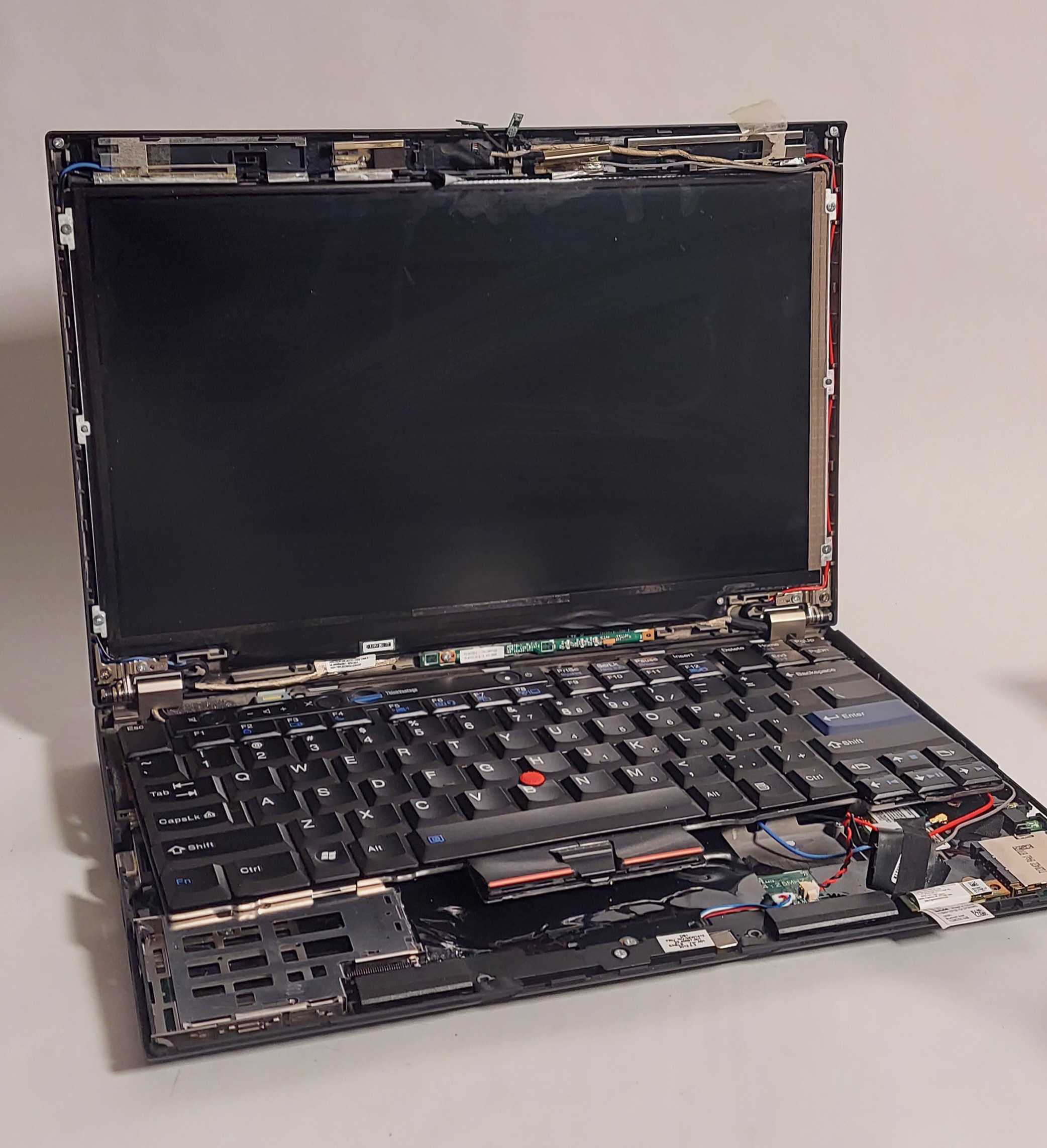 That's not at all how it arrived, in fact I had been in the process of refurbishing and modding it, applying new thermal paste, upgrading the network card to 5ghz, flashing the Libreboot firmware to neuter Intel M.E., and desoldering the microphones just for fun, to maybe advertise it as an ultra private device XD