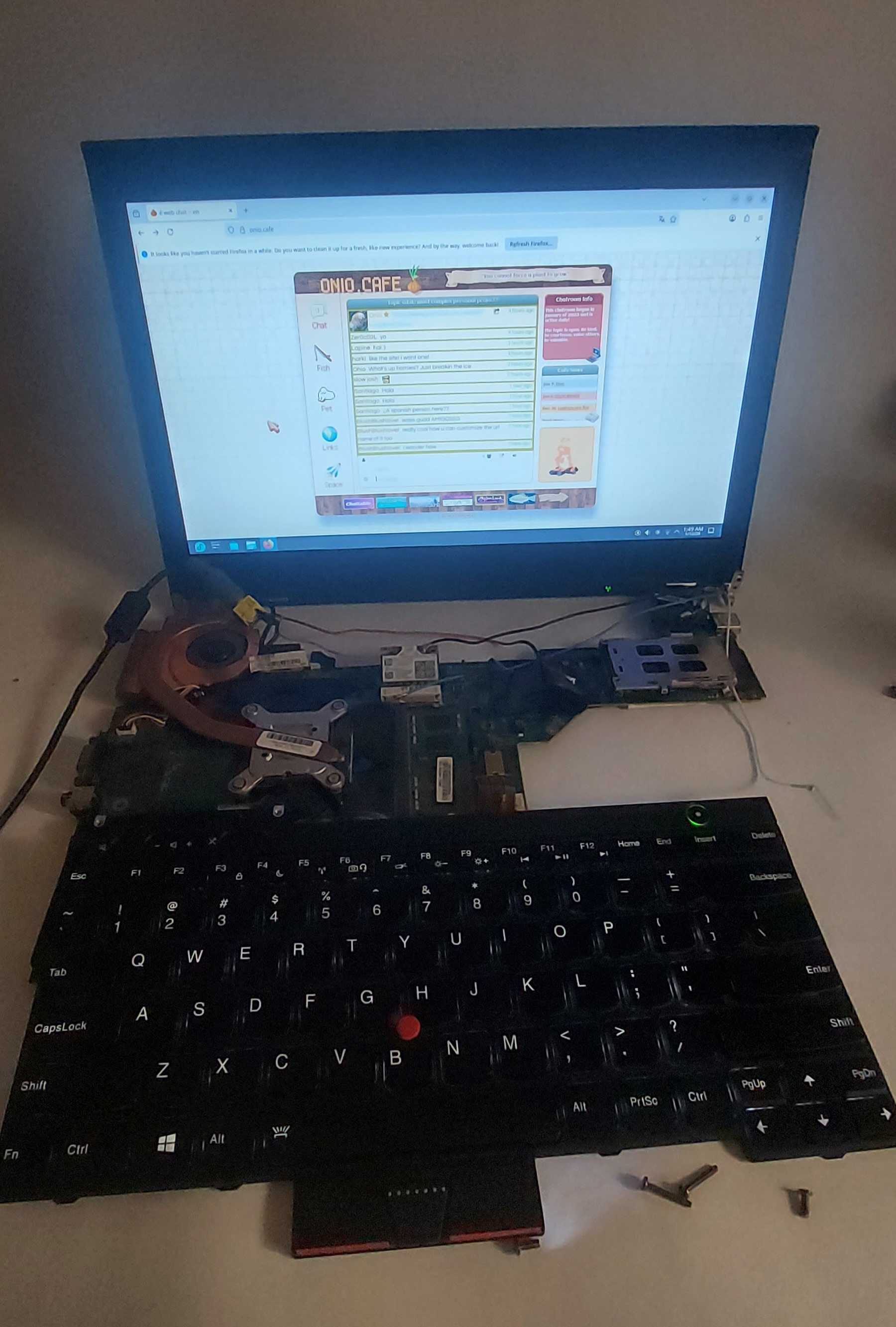 I used the X220 to Libreboot the T430, which involves tearing the whole thing down to the motherboard, and I didnt want to reassemble the whole thing just to see if it worked, so I plugged in the keyboard, the display, and popped on the heatsink and plugged her in. It was fun to browse the internet like this.